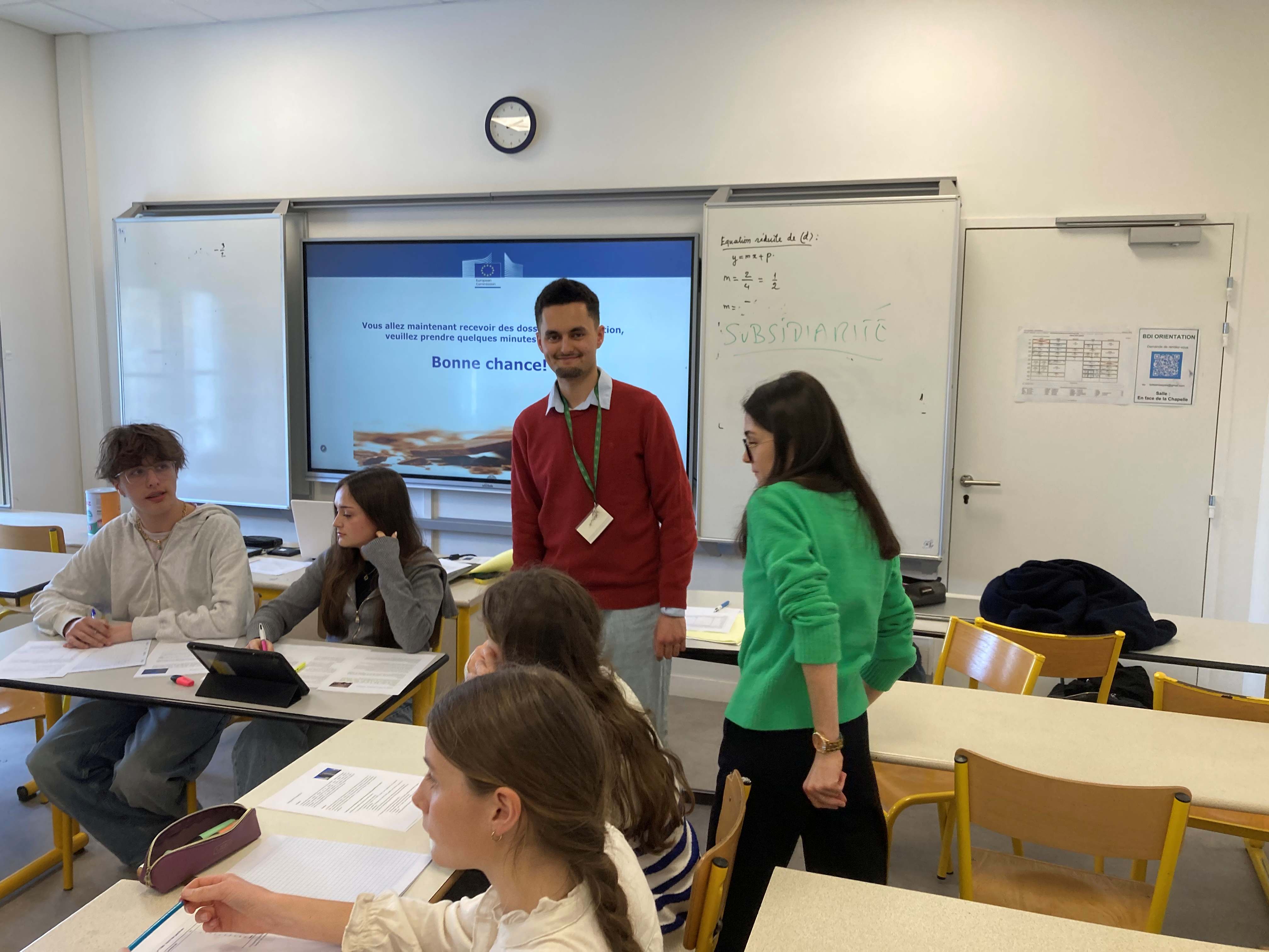 Répartis en deux groupes, les élèves ont endossé le rôle de représentants d’États membres et d’institutions européennes. Ils ont dû négocier, argumenter et trouver des compromis afin d’élaborer un texte susceptible d’être adopté à la fois par le Parlement européen et par le Conseil de l’Union européenne, tout en respectant les règles parfois complexes de la majorité qualifiée.