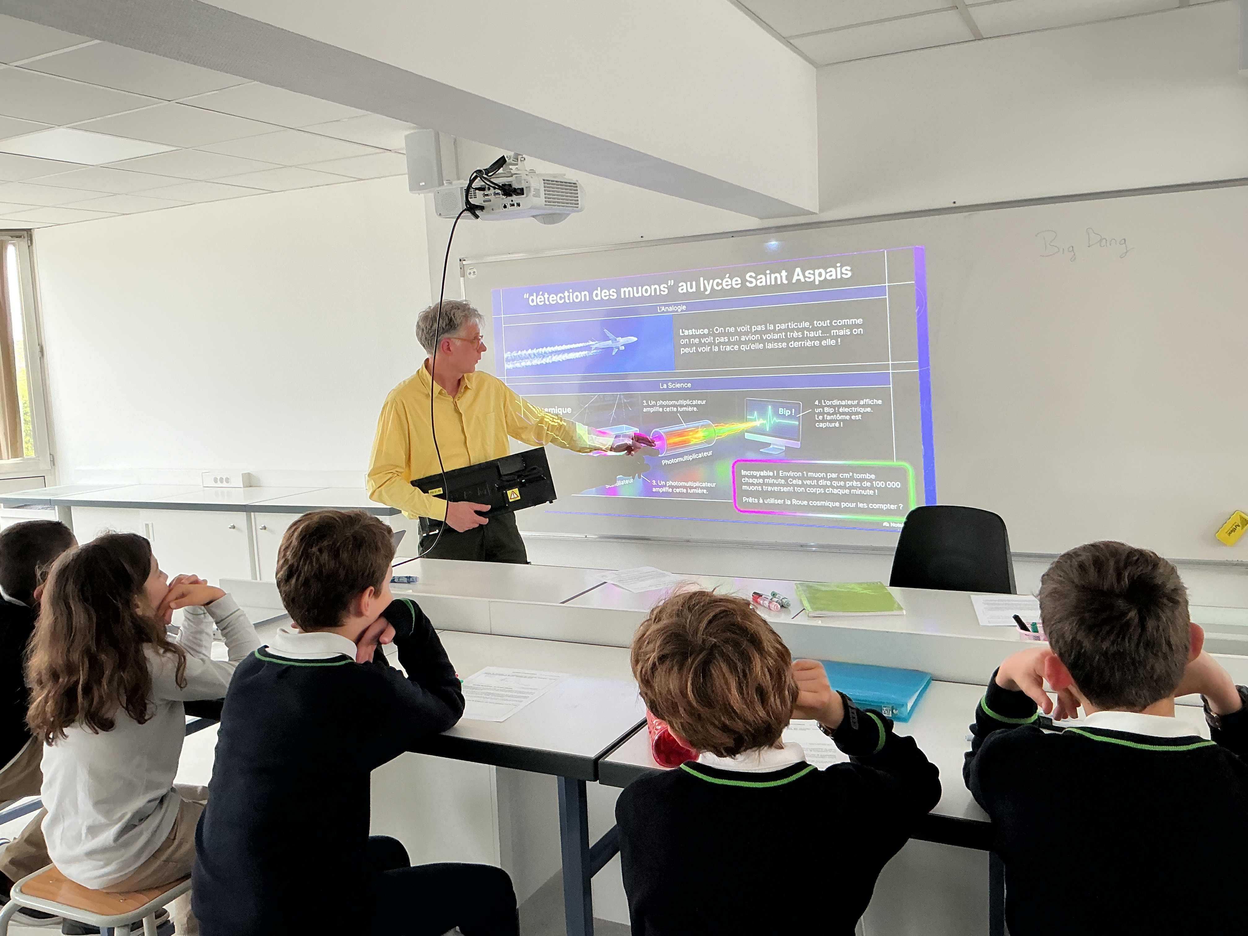 Les élèves ont découvert un phénomène fascinant : des particules voyageant depuis le fin fond de l'espace percutent les gaz de notre haute atmosphère à une vitesse vertigineuse. Ce choc crée alors une "douche" de particules secondaires, notamment des muons.